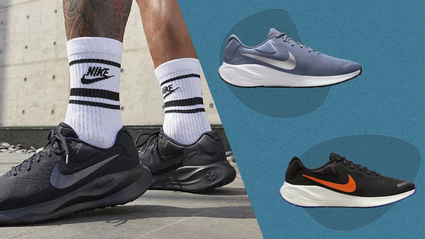 Nike Revolution 7 in Black/Astronomy Blue/Sail/Hyper Crimson, $49 (was $70) at Nike